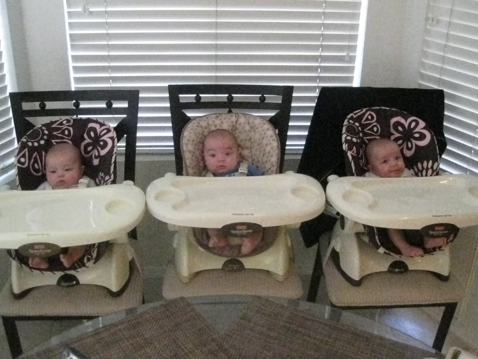 All the babies are smiling and cooing and kicking. They love looking at themselves in the mirror! They are doing so well! They sit up and watch cartoons or us and they have started to really notice the dogs and each other! AND, I cannot forget to mention that last night all three slept through the night for the first time! We have been putting them to bed around 8pm and they will sleep about 6 hours until about 2am, we feed them and they sleep again until about 6 or 7 am. But last night, they slept through that 2am feeding, so hooray! Lets hope this continues. Its actually been pretty weird since we have been putting them to bed at 8pm. Tommy and I actually have a couple hours at the end of the day to wind down and do our own thing instead of rushing off to bed as soon as they go down. I feel like my little angels are really turning a corner.